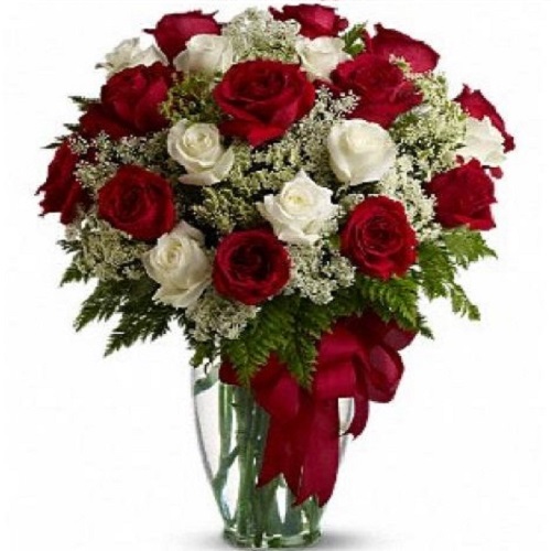 K款白玫瑰加红玫瑰共19枝瓶插花