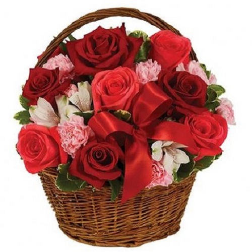 R款红玫瑰加粉玫瑰加6康乃馨祝贺花篮