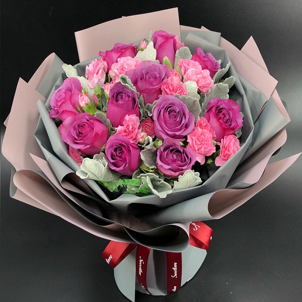 H款:11朵紫玫瑰加11朵粉色康乃馨花束