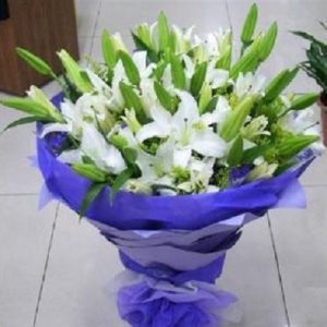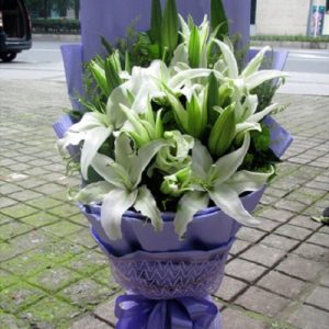 B款:18支白色香水百合,蓝色包装。