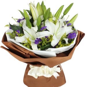 C款:5支白色香水百合,土黄色包装。
