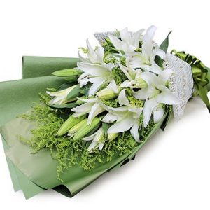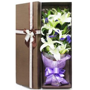 H款:5支白色香水百合,长形礼盒包装。