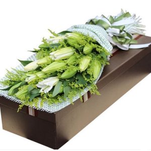 F款:5支白色香水百合,长形礼盒包装。