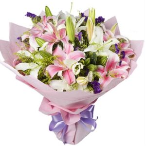 商品材料:白色百合,白色香水百合,粉色百合,粉色香水百合等。