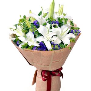头一回网购鲜花下单时还有些忐忑,收到后大大的惊喜。包装大气、细心,11朵百合还搭了4支配花,花朵新鲜骨干直。店家还送了一小包营养粉及鲜花保养卡片。非常满意!