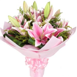 T款:12支份色香水百合,粉色包装。