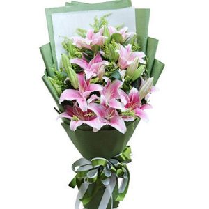 V款:5支粉色香水百合,长形包装。