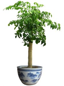 4.幸福树需要的土壤:盆栽菜豆树,应选用疏松肥沃、排水透气良好、富含有机质的培养土。通常用园土5份、腐叶土3份、腐熟有机肥1份、河沙1 份混合配制。也可以用现在的进口基质或者用国产的草炭土加珍珠岩和蛭石来配制,使最终基质的pH值为5.5-6.0,EC值为1.0-1.5mS/cm。花盆一般用15-24cm的花盆,可以根据最终栽培植株的大小来决定所用花盆的大小。现在市场流行的栽培方式是每盆栽培一株或者两株,每盆的株高在70cm以上。生长季节每月进行一次松土,确保其根部始终处于通透良好的状态。梅雨季节,对搁放于露天环境中的盆栽植株,每次大的降雨后要及时检查盆土,发现盆内有积水要尽快排除,并于盆土收干后进行翻盆换土。一般情况下,作为家庭盆栽的中小植株,可每年于4 月初出房时进行一次翻盆,以满足其全年生长对土壤肥力的要求。