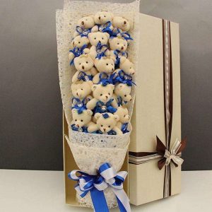 - D款18个小公仔1个大公仔11支蓝玫瑰花束心形礼盒