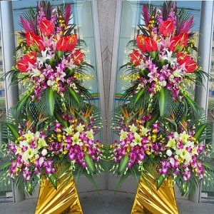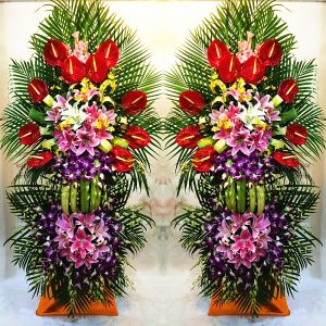 T款:两层豪华花篮,洋兰,红掌,百合花等,绿叶丰满。