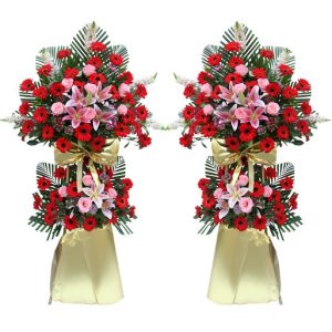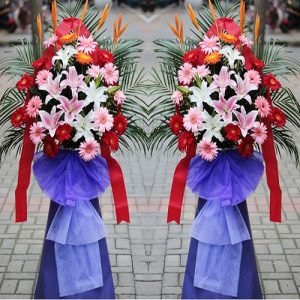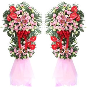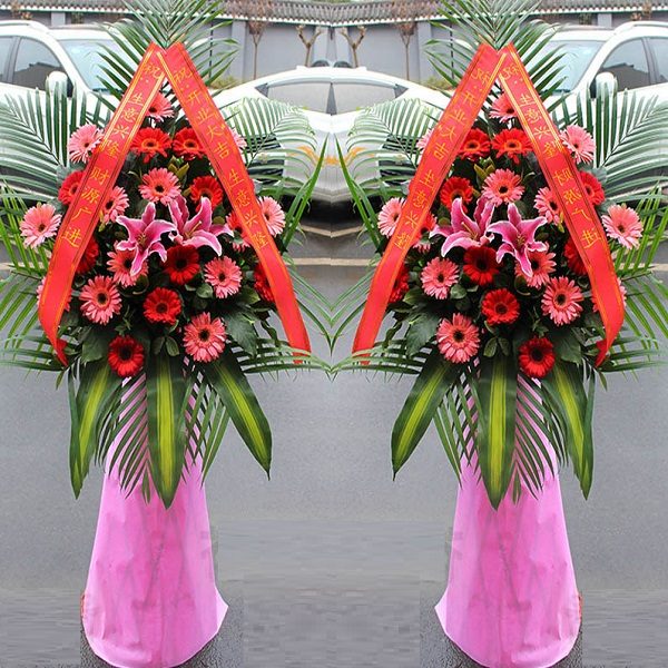 说明:标价均为单个的花篮价格,免费送条幅或贺卡,花篮条幅格式:祝XXX店开业大吉生意兴隆,XXX恭贺。花篮贺卡格式:纸卡上面:祝XXX店,纸卡中间:开业大吉或乔迁之喜,纸卡下面:XXX恭贺。辅花材可用价值相同花材代替,花篮架子以当地的为准,形状花材不变,量大优惠,详情咨询客服。