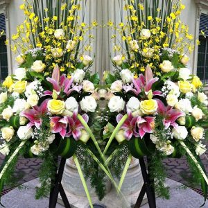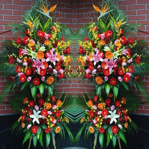 N款:双层花篮,太阳花,百合花,玫瑰花,跳舞兰,天堂鸟等,绿叶丰满。
