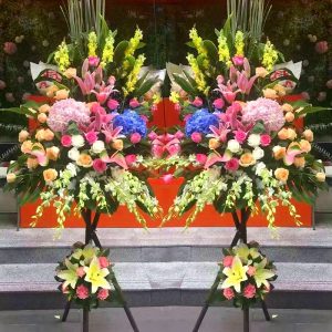 T款:两层豪华花架,洋兰,绣球花,百合花,紫罗兰,玫瑰花等,绿叶丰满。