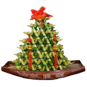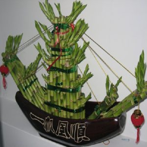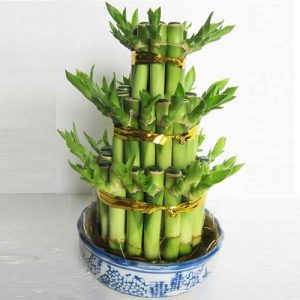 中国有“花开富贵,竹报平安”的祝辞。富贵竹一般多用于家庭瓶插或盆栽护养,特别是“塔状”的造型,又叫“开运竹”。是从台湾流传过来的设计,这种设计颇受国际市场的热捧。切断组合的“富贵塔”形似中国的古代宝塔,象征这吉祥如意和富贵。