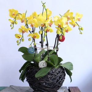 蝴蝶兰生长周期长,在自然界,由小苗至开花约需要3~4年时间。在良好的人工栽培条件下,延长每日受光至14小时,将晚间温度维持在21℃左右,并加强水肥管理,可缩短由小苗至开花的时间,从小苗到开花约需1~2年。多数蝴蝶兰品种于春季开花,也何夏季开花的;花梗自叶腋中抽出,上着生数朵花,依次开放,每朵花可开放一个多月。
