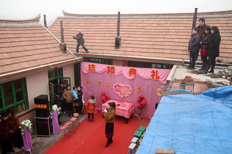农村婚礼现场的室外布置基本上是在自己家的门口摆放宴席的桌,因为大部分农村家庭家里都是有个很在的院子的。还会请个厨师来做宴席的,一包要红个红包给厨师,至于多少这个要根据桌数来定的,每个地方的行情都是不同的。有些地方会把酒席承包给流动厨房,这样家里人就可以省更多的事情,当然花费了是更高的。