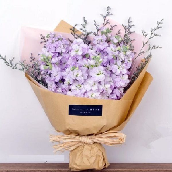 F款:11支浅紫色紫罗兰,1个绣球,5支桔梗,牛皮纸包装。