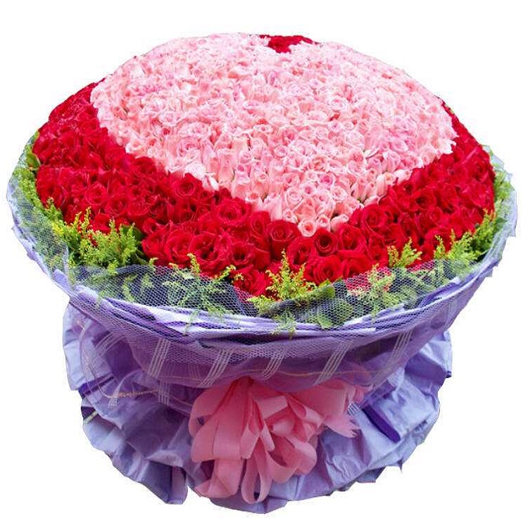 - F款:红玫瑰加粉玫瑰心形520朵玫瑰花