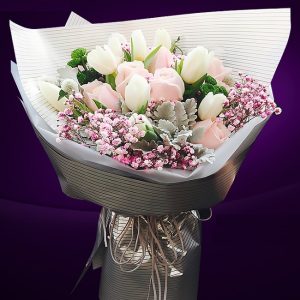 商品材料:9朵郁金香/11朵郁金香/19朵郁金香/33朵郁金香/52朵郁金香/66朵郁金香/99朵郁金香,玫瑰花,绣球花,百合花等。