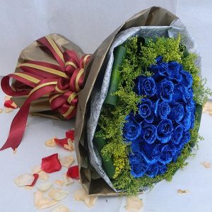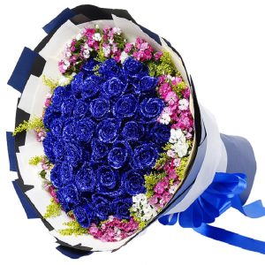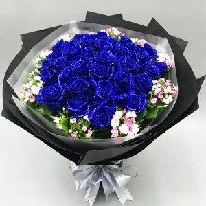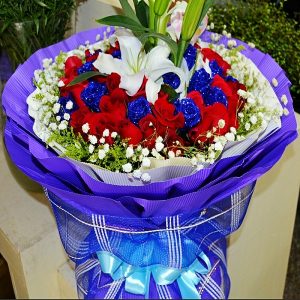 - G款:11支蓝玫瑰加22支红玫瑰加9朵香水百合