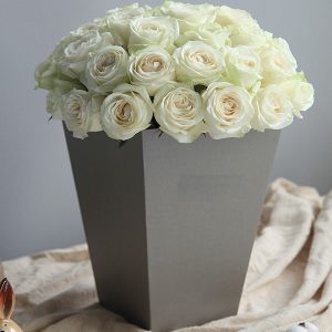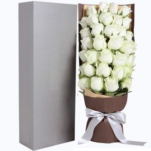 - K款:高档礼盒装鲜花:33枝白玫瑰,少量绿叶