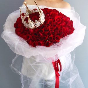 F款花束:19朵戴安娜加银叶菊、满天星等配花。