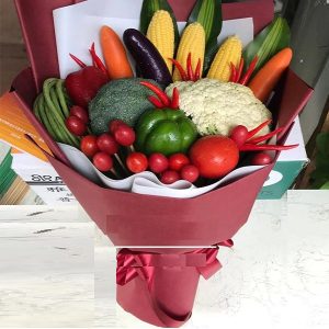 E款:蔬菜花束:西红柿、玉米、黄瓜、豇豆、茄子、西蓝花等蔬菜花束。