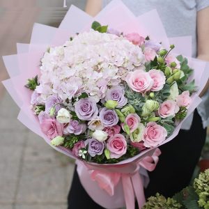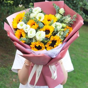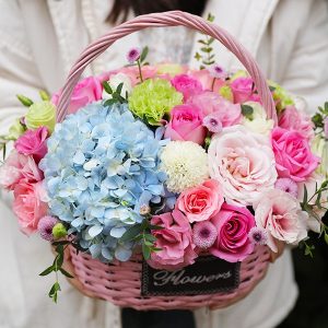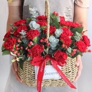 商品材料:康乃馨、玫瑰花、绣球花、百合花、向日葵、银柳、鲜花花束等。