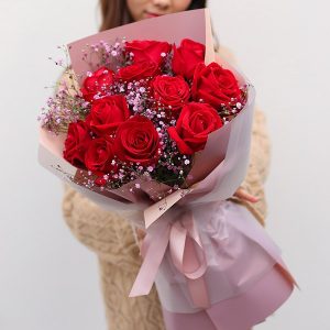 E款玫瑰花:11支红玫瑰加桔梗、红豆花束。