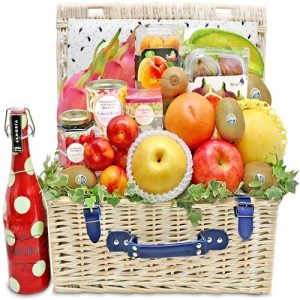 Z款:此果蓝内有6款时令水果,哥伦比亚麒麟果,日本青森县苹果,进口提子,火龙果,奇异果,韩国水晶梨,Agnes B 礼盒果挞/ Twelve cupcake礼盒小蛋糕 (需提早1天预订) ,编织礼篮 (款式可能调动) 。