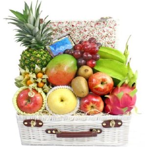 W款:此送礼食物篮hamper G10 共有 6 件Items(包括包装篮),此果篮内有6款新鲜时令水果(标准果量大约6-8pcs)(水果重量约为3KG/7LB),日本青森县苹果,盒装奇异果/进口盒装水果,进口提子/进口盒装水果,杨桃/芒果,火龙果,富士苹果,日本青森县, 100% 苹果汁,Italian Tomato 朱古力脆片曲奇 / Godiva Sables牛油五味曲奇系列铁罐礼盒,Crabtree & Evelyn 优质果酱 / 意大利黑松露酱(黑松露,蘑菇) ,法国Mon Village/欧洲进口椒盐脆饼,啡/白色田园风格礼篮 。