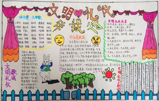 细心观察就会发现,校园里破坏公物的现象比比皆是:有同学为求近路而不惜践踏草坪;踢球时不小心打碎了教室的门窗;户外运动中弄坏了校园里的公共桌椅、栏杆和垃圾桶;课桌椅上经常会看见各式各样的涂鸦……这些都关乎到文明礼仪,讲文明讲礼貌要从娃娃学起,下面我们就讲讲小学生文明礼仪常识。