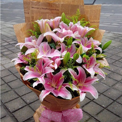 情人节送百合花:百合象征纯洁的爱情、心想事成,百年好合,送给别人喻示着两个人之间纯洁美满的爱情,也祝自己和她百年好合的意思。在中国百合具有百年好合美好家庭、伟大的爱之含意,有深深祝福的意义。