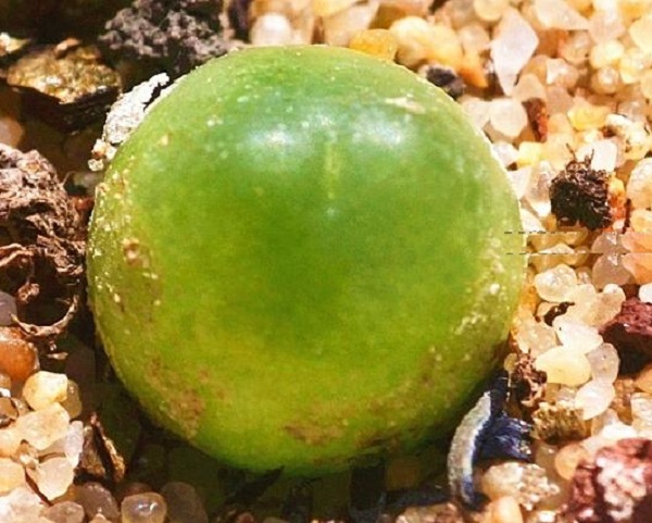 灯泡外皮亮翠绿色,透明色状,夏天的休眠状态,阳光照射充裕的自然环境中,外皮呈鲜红色。花大呈淡暗紫色,管理中心位置呈乳白色,春天或秋天对外开放。花瓣大白天对外开放,夜里合闭,若种植自然环境阳光照射不够或下雨天则无法开花。