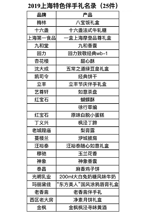 2019上海伴手礼特色产品(伴手礼)名单