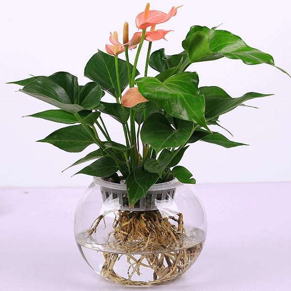 据严老师介绍,诱导成功后水培花卉,生长所需的营养主要依靠特制的营养液提供,使用简单方便。在一般的情况下,30天左右换水一次,同时添加10毫升左右营养液即可。平时如发现水分缺失,只需加水而不用添加营养液,就可满足植物生长的需要。实验表明,水培花卉花期较长,花色鲜亮,病虫害少。最大的特点是在房间,特别是在空调房间里摆放时,水培植物比普通介质栽培的长势壮,观赏价值高。