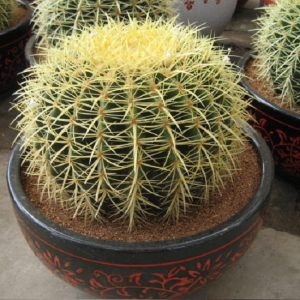 金琥别称:象牙球、金琥仙人球,(学名:Echinocactus grusonii Hildm.)是仙人掌科、金琥属多年生草本多浆植物。金琥性喜阳光充足,多喜肥沃、透水性好的沙壤土。夏季高温炎热期应适当蔽荫,以防球体被强光灼伤。栽培沙壤土:可用等量的粗沙、壤土、腐叶土及少量陈墙灰混合配制。要求阳光充足,但夏季仍可适当遮阴。越冬温度保持8-10摄氏度,要求干燥。在肥沃土壤及空气流通的条件下生长较快。
