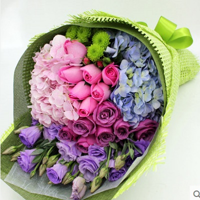 上海春暖花开51214.com鲜花网店推荐二:玫瑰花束,绣球花束系列,圆形包装,样式选择