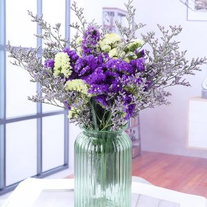 红、橙、黄等暖色系,波长较长,看起来距离会拉近故称前进色。蓝、紫等冷色系,波长较短,看起来距离推后,故称为后退色。黄绿色和红紫色等为中性色,感觉距离中等,较柔和。明度对色彩的远近感影响也很大,明度高者感觉前进而宽大,明度低者则远退且狭小。插花时可利用这种特性,适当调节不同颜色花材的大小比例,以增加作品的层次感和立体感。