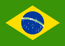 巴西国旗: 呈长方形,长与宽之比为10∶7。旗地为绿色,中间是一个黄色菱形,其四个顶点与旗边的距离均相等。菱形中间是一个蓝色天球仪,其上有一条拱形白带。绿、黄色是巴西的国色。绿色象征该国广阔的丛林,黄色代表丰富的矿藏和资源。天球仪上的拱形白带将球面分为上下两部分,下半部象征南半球星空,其上大小不同的白色五角星代表巴西的26个州和一个联邦区。白带上用葡萄牙文写着“秩序和进步”。
