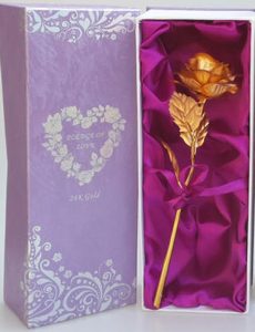 金箔玫瑰礼物心语:炫目的金色,能把充满爱意的心给吸进去,让爱情定格在最美好的一刻,无惧时光的流逝。