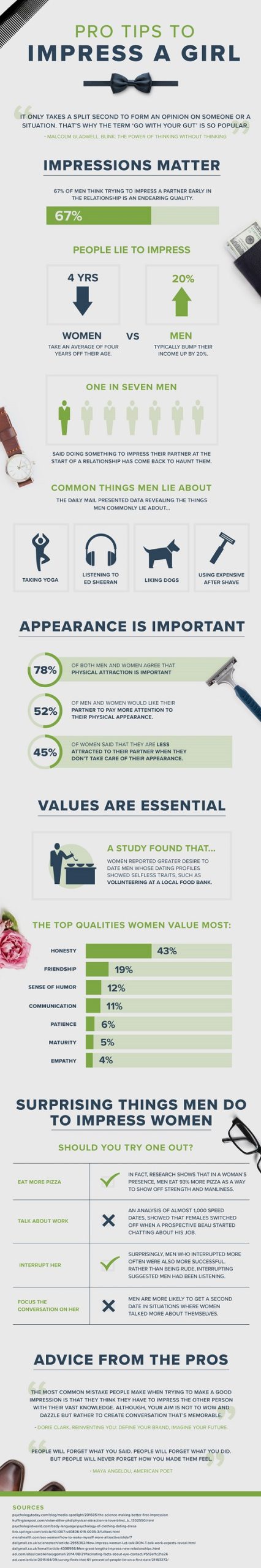 在下方查找有关如何给女性留下深刻印象的更多提示、技巧和有趣的统计数据: 既然您知道如何发挥最佳作用,请不要忘记在结识新朋友时玩得开心。你越舒服,它就会越好。哦还有一件事,别忘了鲜花。