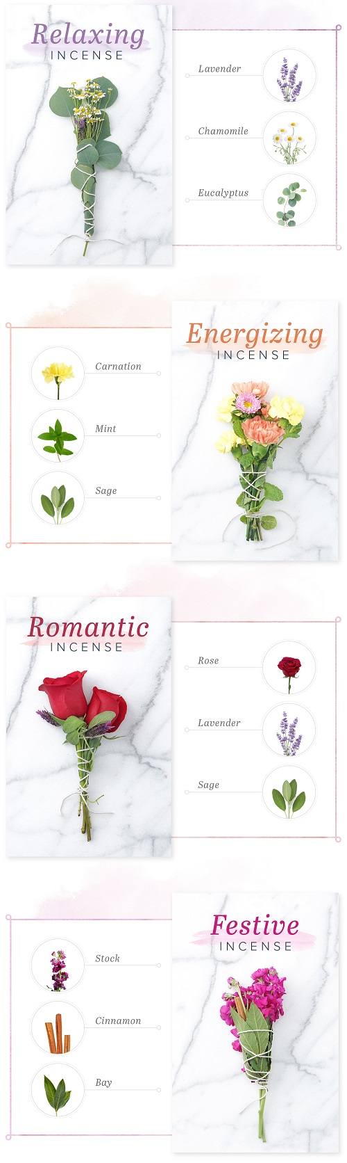 鲜花和香草——挑选您最喜欢的鲜花和香草来制作您的自制熏香。我们在下面列出了我们推荐的选择。在开始准备香包之前,请务必检查您的鲜花是否应季。