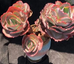 高砂之翁(外文名Echeveria ‘Takasago No Okina’)是景天科,拟石莲花属的多肉植物。特征是其边缘呈大波浪卷形的宽大叶片,颜色随光照变化从蓝紫到橙红变幻不定,是一种具有别样魅力的拟石莲品种。高砂之翁是杂交种而非栽培变种。最早在日本被培育。亲本为E. crenulata (?) x 银明色(E. carnicolor)。下面分享好看的高砂之翁图片,唯美老桩盆栽高砂之翁图片高清,各种高砂之翁图片大全大图。
