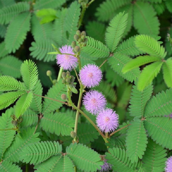 含羞草(学名:Mimosa pudica Linn. ):为豆科多年生草本或亚灌木,由于叶子会对热和光产生反应,受到外力触碰会立即闭合,所以得名含羞草。含羞草别称:感应草、知羞草、呼喝草、怕丑草、见笑草、夫妻草、害羞草。