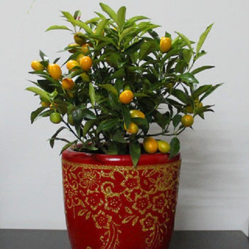4、金桔树浇好水。金桔喜湿润但忌积水,盆土过湿容易烂根。因此,生育期间保持盆土适度湿润为好。春季干燥多风。需每天向叶面上喷水一次,增加空气湿度。夏季每天喷水2~3次,并向地面喷水。但开花期避免喷水,以防烂花,影响结果。雨季应及时倾倒盆内积水,以免烂根。夏天放室外时,最好用砖将花盆垫起,以利排水。金桔白花期至幼果期对水分的要求较敏感。此时盆土过干,花梗和果柄易产生离层而脱落;浇水过量,盆土透水性能又差,也易引起落花落果。因此,这时以使盆土保持不干不湿的半墒状态为宜。