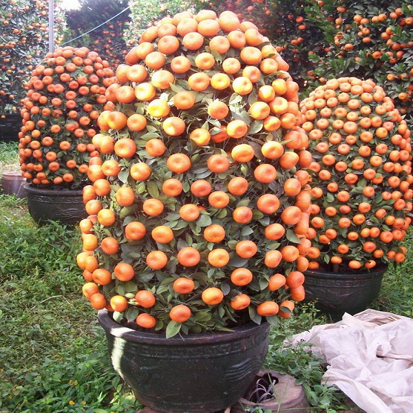 2、金桔树巧修剪。修剪是使金桔花繁果硕的一项重要技术措施。为使树形优美,多结果,每年树液开始流动之前,春芽尚未萌发时进行一次重修剪,剪去枯枝、病虫枝、过密枝和徒长枝,保留3~4个头年生的健壮的、分布匀称的枝条,每个枝条只留基部2~3个芽,其余的剪掉。这样就可以萌发10余枝充实的春稍。当新稍长到15~20厘米时进行摘心,使株形丰满,此时施一次速效性磷肥,促使花芽分化。开花时应适当疏花,节省养分。着生幼果后,当幼果长到约1厘米大小时,可进行疏果,粗壮枝条每株留2~3个果,弱枝每枝保留一个果,并使全株果实均匀。及时剪除秋稍,不使二次结果,以利果形大小、成熟程度一致,提高观赏价值。