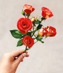 黄昏时,阳光洒在玫瑰花上,衬得玫瑰花宛若一块火焰般的红宝石,谁走过都要瞧一瞧,看一看。
