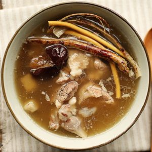 材料:五指毛桃根45–60克、光鸡1只、瘦肉200克、生姜3片。