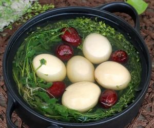 3、从小南京每到三月初三就有煮荠菜蛋的习俗,老人们说吃了这样的鸡蛋,一年可头不晕、不疼、眼不花,不管有没有真实效果,美好愿望是让人期待的,姑且每年这天都煮上一回。